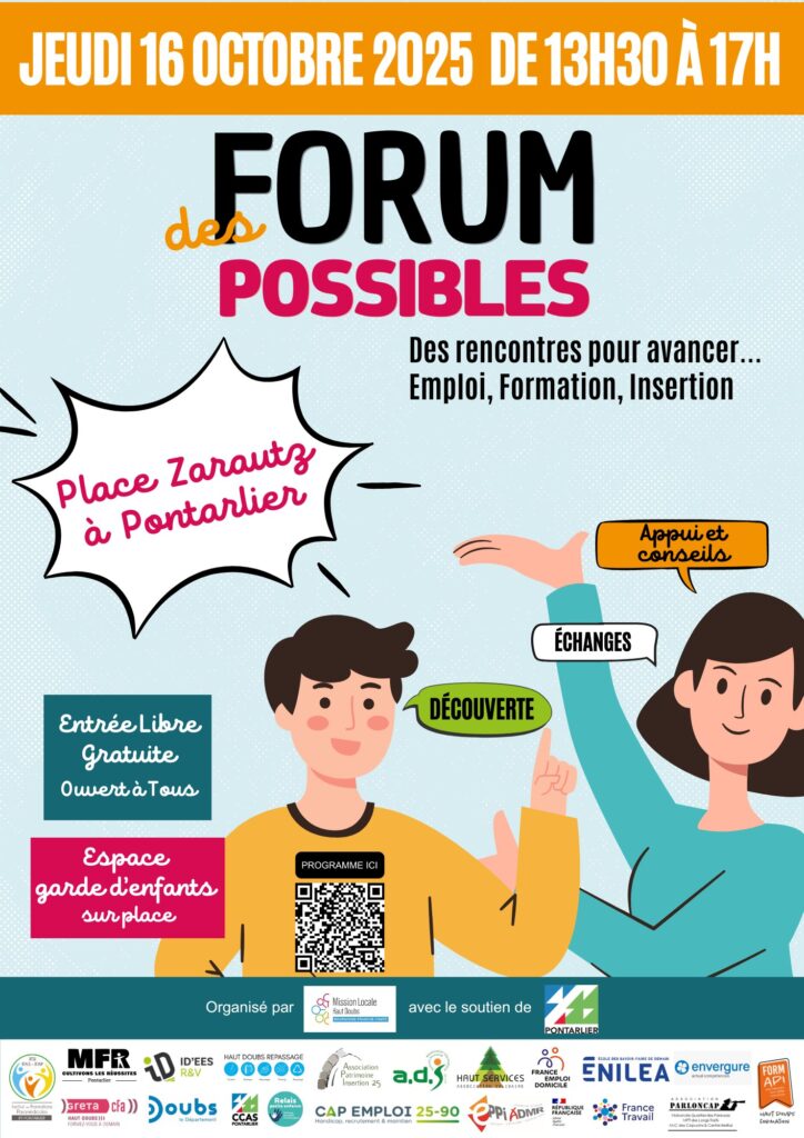 Dans le cadre du projet politique de la Ville de Pontarlier 2025, la mission locale du Haut Doubs organise, en collaboration avec les partenaires locaux, le 𝐅𝐨𝐫𝐮𝐦 𝐝𝐞𝐬 𝐏𝐨𝐬𝐬𝐢𝐛𝐥𝐞𝐬 ![]()